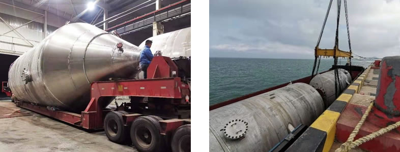 The evaporation separation chamber is the first complete large-scale equipment that is produced, manufactured and inspected strictly in accordance with the pressure vessel standard by our manufacturing center. After the product is completed, the entire acid pickling passivation, water pressure test and nitrogen-filled sealing protection treatment are performed according to the standard. After inspection by the owner and Zhenhai Institute, the two equipment fully met the requirements of the pressure vessel and was accepted. The success of the production and delivery of this equipment by our manufacturing center fully proves that we have full manufacturing and transportation capabilities of large pressure vessels and have mastered the entire manufacturing process of ultra-low carbon stainless steel and super duplex stainless steel. All these technology lays a solid foundation for the second rapid growth of our company. |